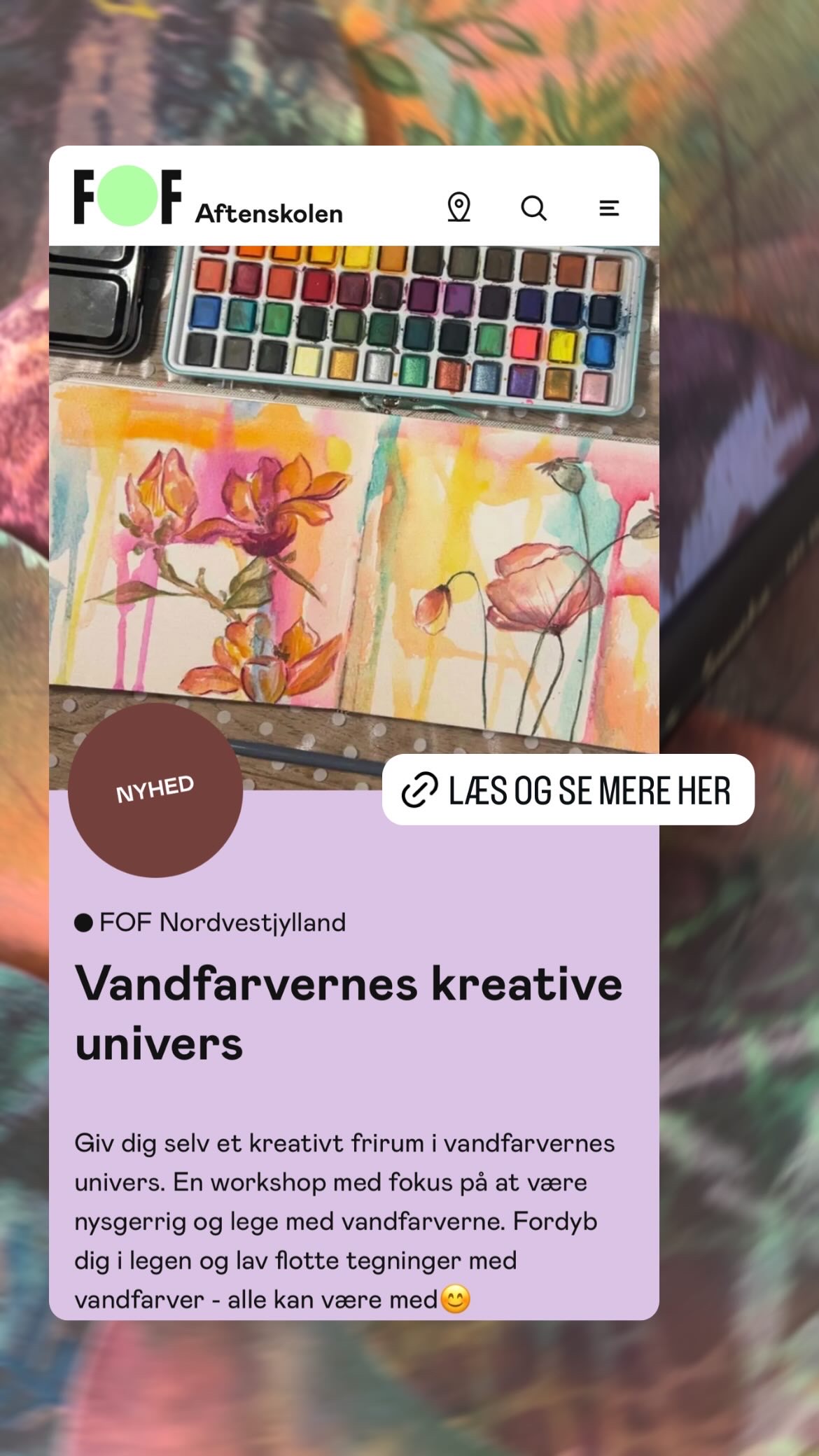 Kreativitet høre ikke kun til i barndommen, du kan finde sindsro og skabe et kreativt frirum ved at udtrykke dig og tillade nysgerrigheden at være drivkræften frem for begrænsningerne. Jeg har selv brugt kreativiteten og skaberkraften inden i mig selv, til at få fred og og glæden tilbage i livet. Efter en barndom med kaos og forældre med deres udfordringer, har jeg både haft stress, angst og depression. For ikke mange år siden blev jeg fysisk udbrændt og her ramte jeg bunden, og jeg måtte “starte forfra”, her blev kunsten et holdepunkt hvor jeg genfandt glæden og mit personlige udtryk der idag spirer på flere måder. Hvor jeg er så heldig at kunne give ud af erfaringerne og glæden ved det kreative frirum og hvordan du aktivt kan bruge dette i en travl og stressfuld verden.